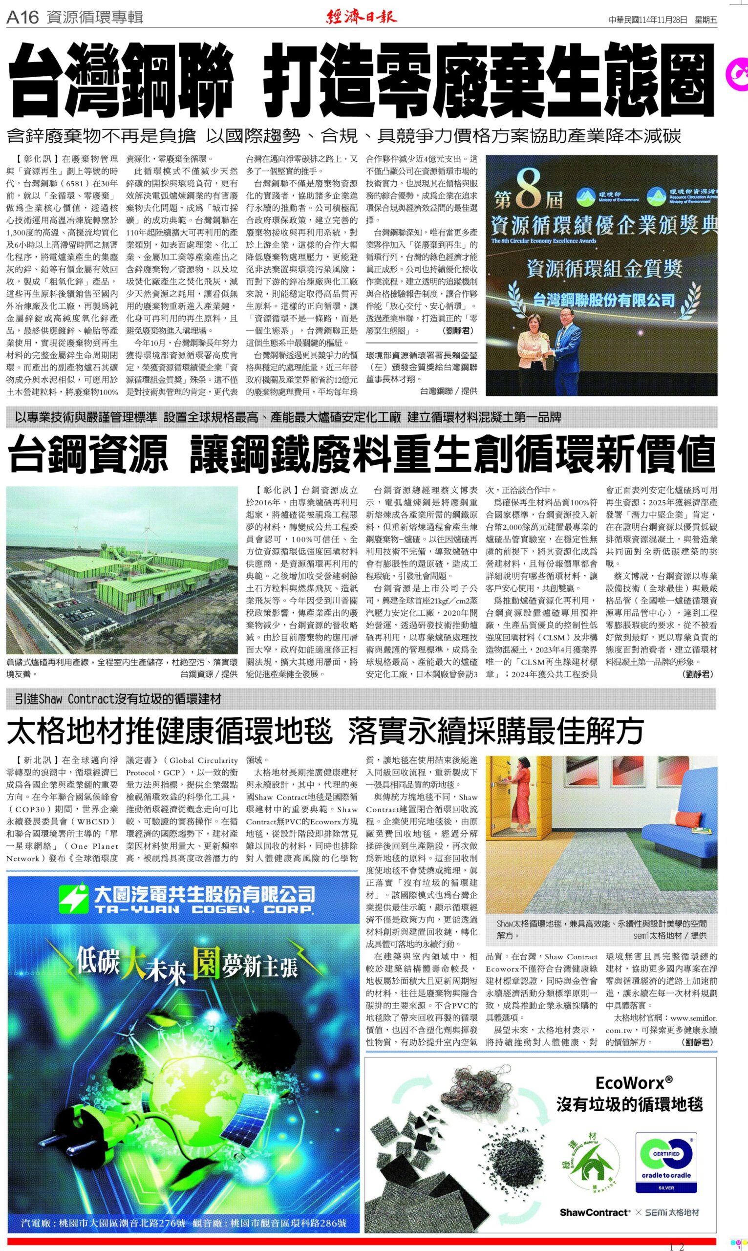 在政策與市場雙重驅動下,台灣鋼聯持續擴大循環應用範疇,推動資源高值化利用,讓鋼鐵產業從線性消耗邁向循環共生。未來,台灣鋼聯將持續深化技術研發與跨域合作,以實際行動回應減碳趨勢,成為台灣鋼鐵循環經濟的重要推手,為產業永續與環境保護建立長期穩定的發展基礎。